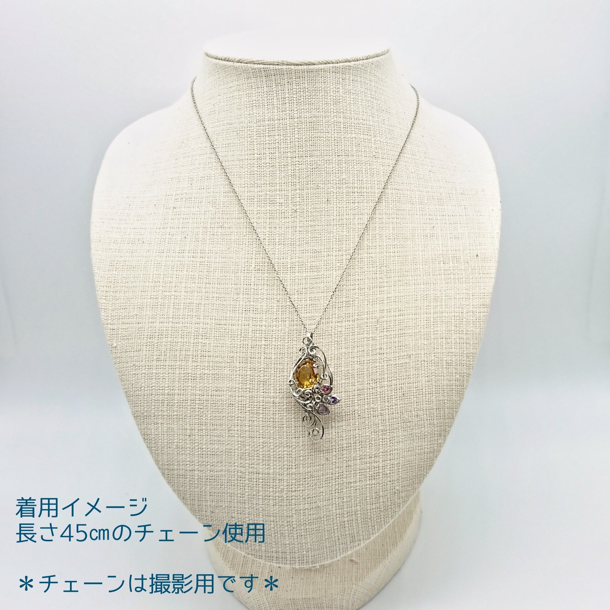 ハチミツ色が美しいシトリンに小粒の色石3粒を添えたペンダントトップです。