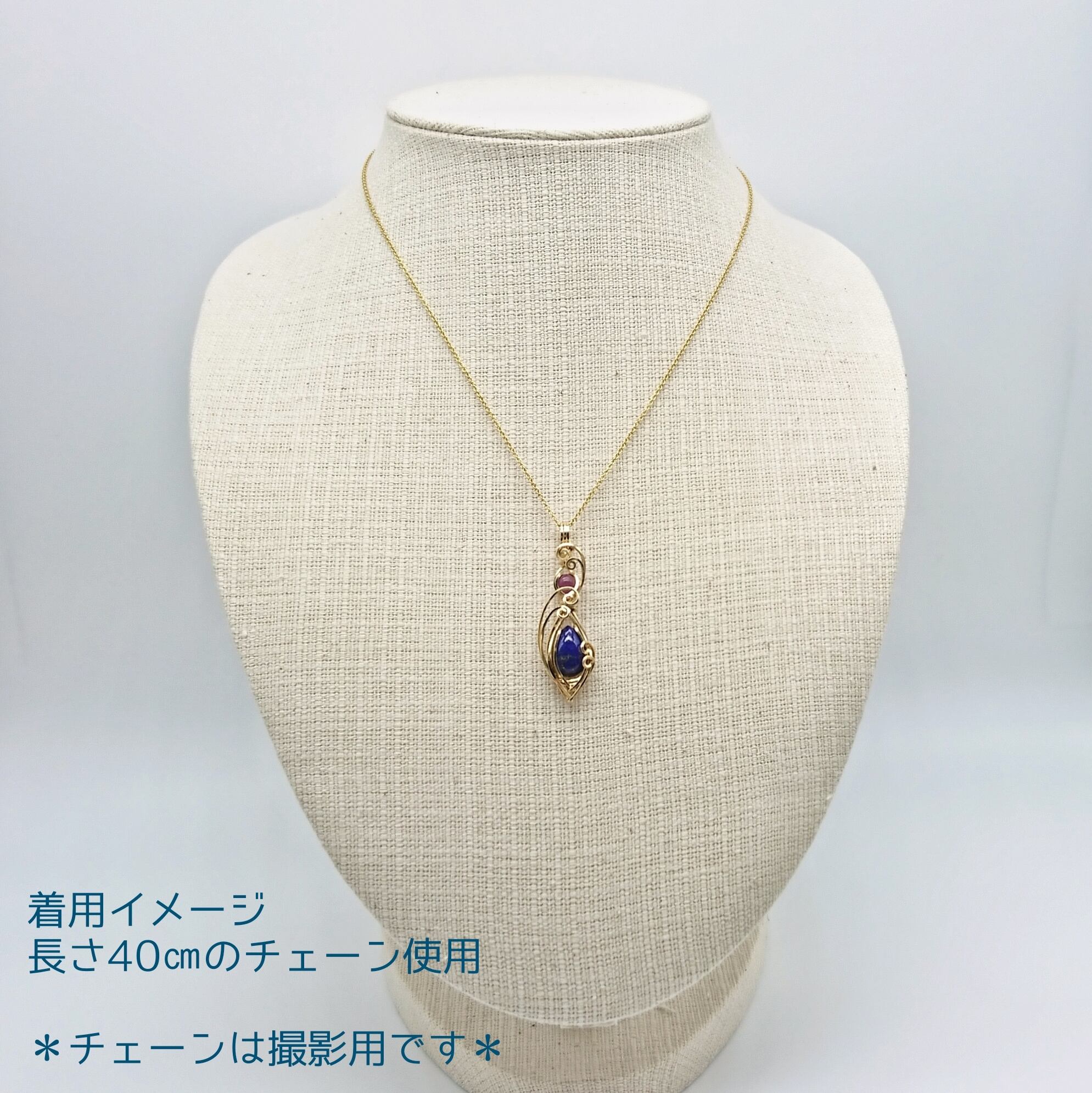 深いブルーが美しいラピスラズリにルビーを添えたペンダントトップです。